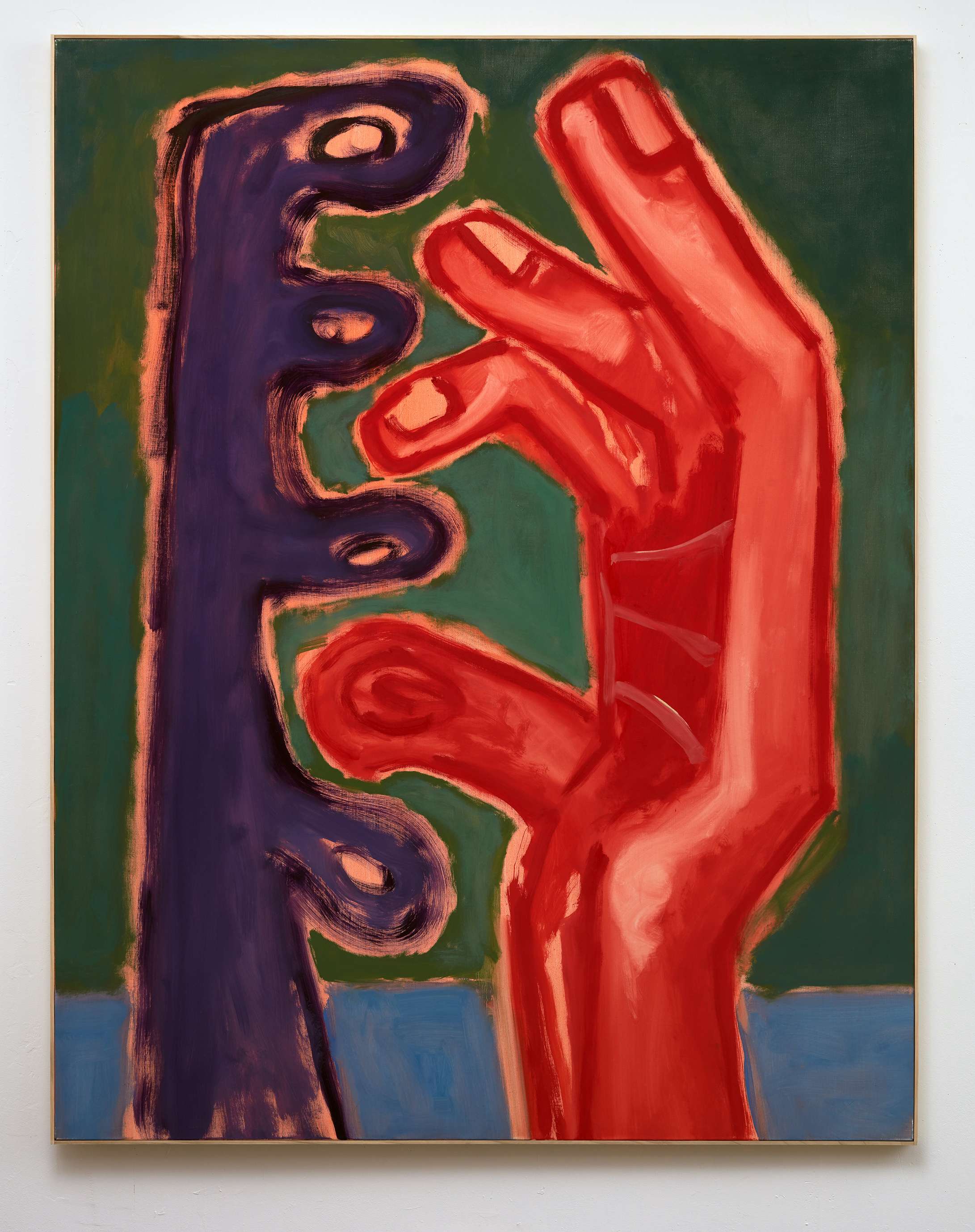 Red Hand, Violet Hand, 2017. Oil on canvas, 70 3/4 x 55 inches