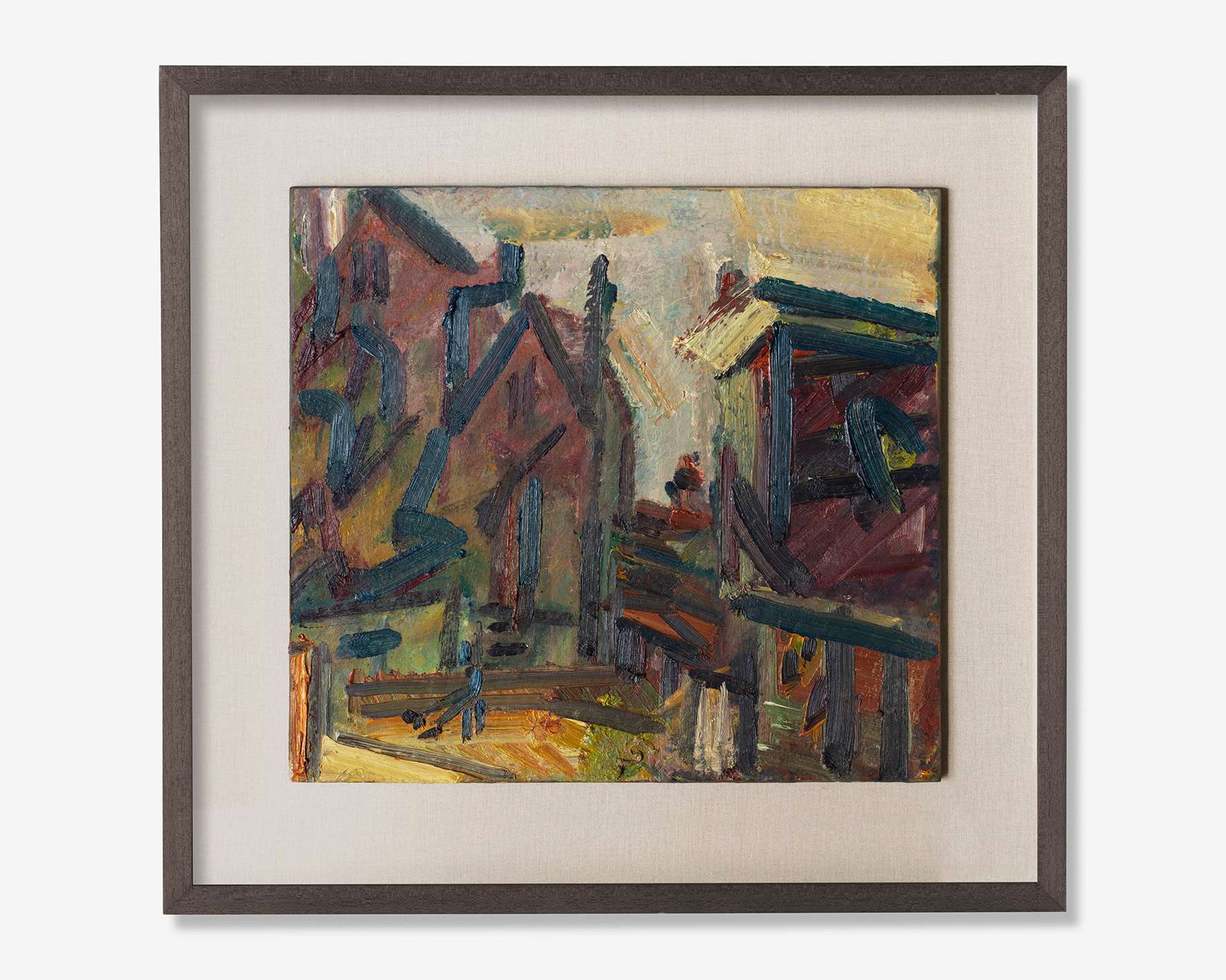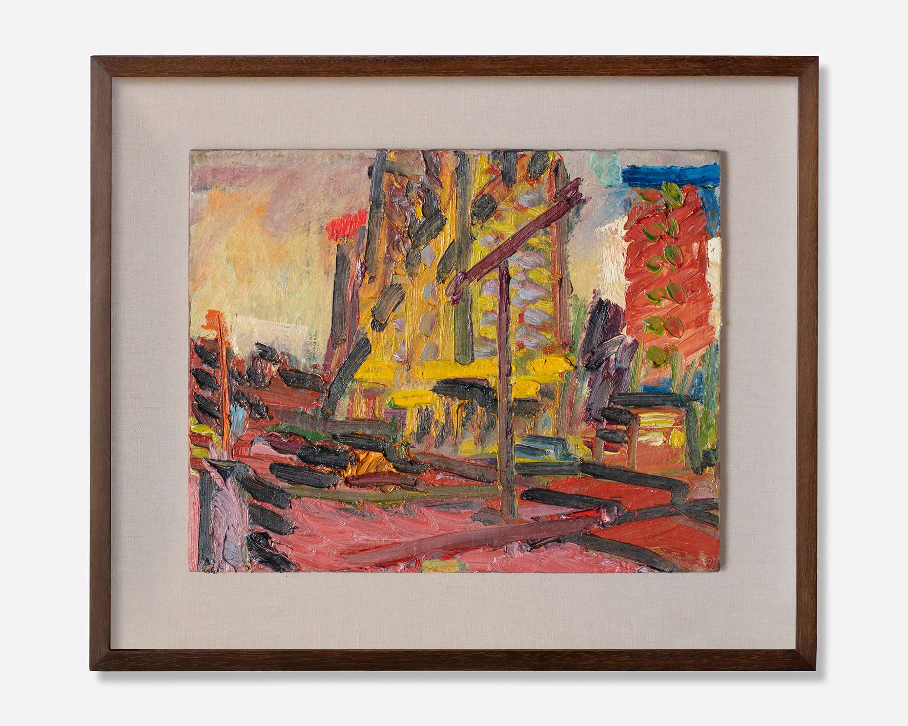 Tower Blocks, Hampstead Road, 1998. Oil on board, 16 x 20 in (40.6 x 50.8 cm).