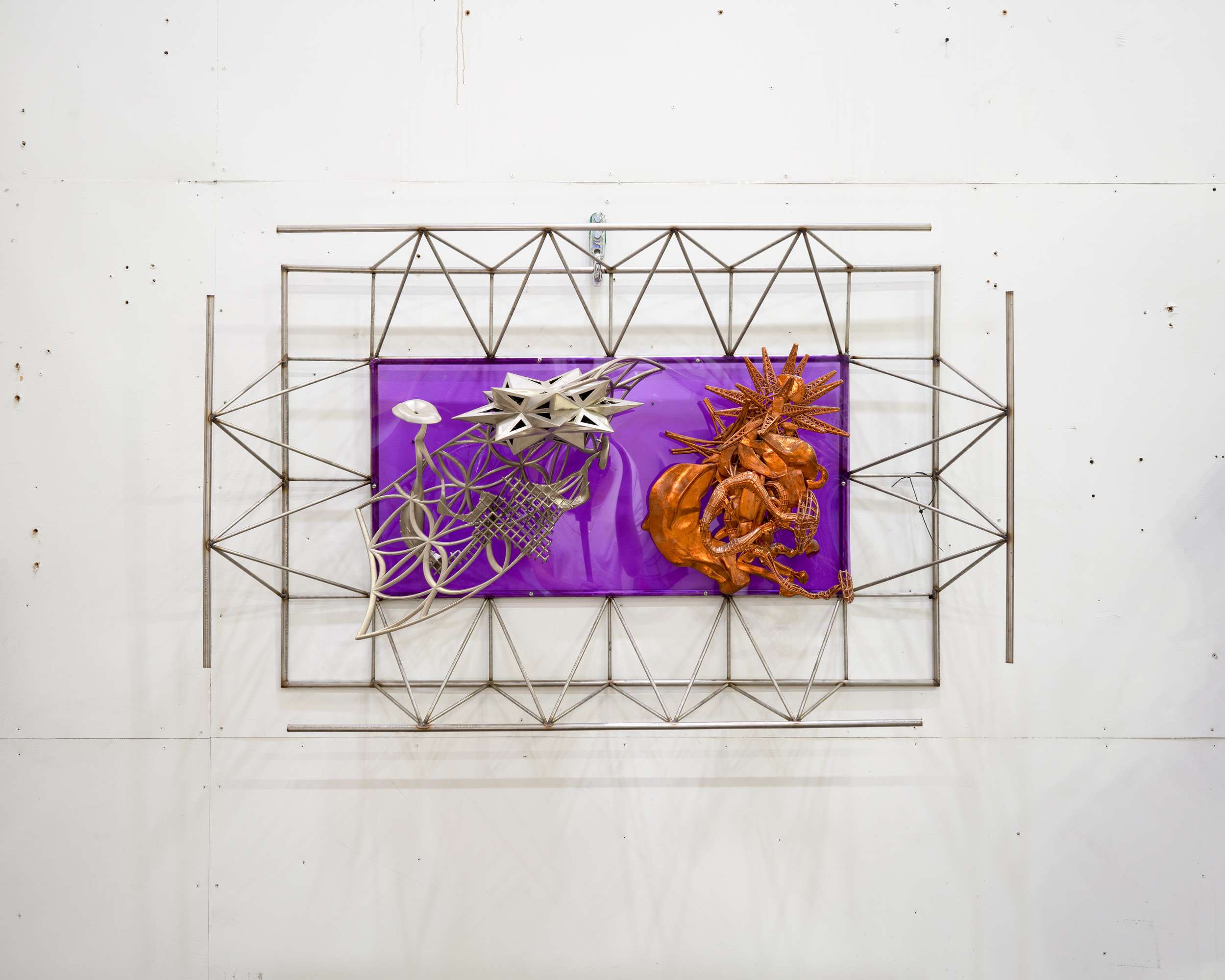 Transparent Study on Violet, 2019, Nickel and copper plated rpt, acrylic and steel, 41 x 65.5 x 18” (104.1 x 166.4 x 45.7 cm)