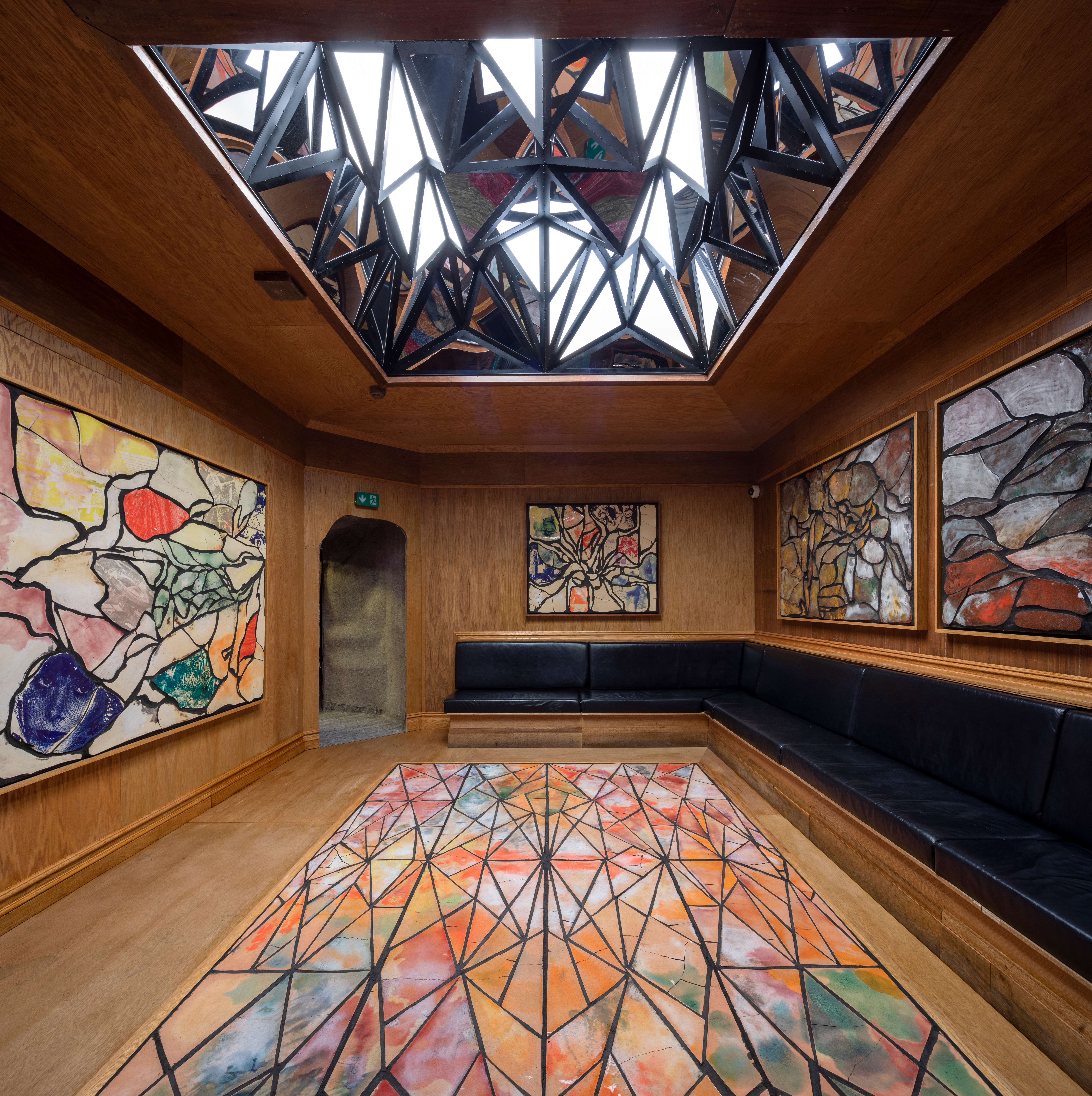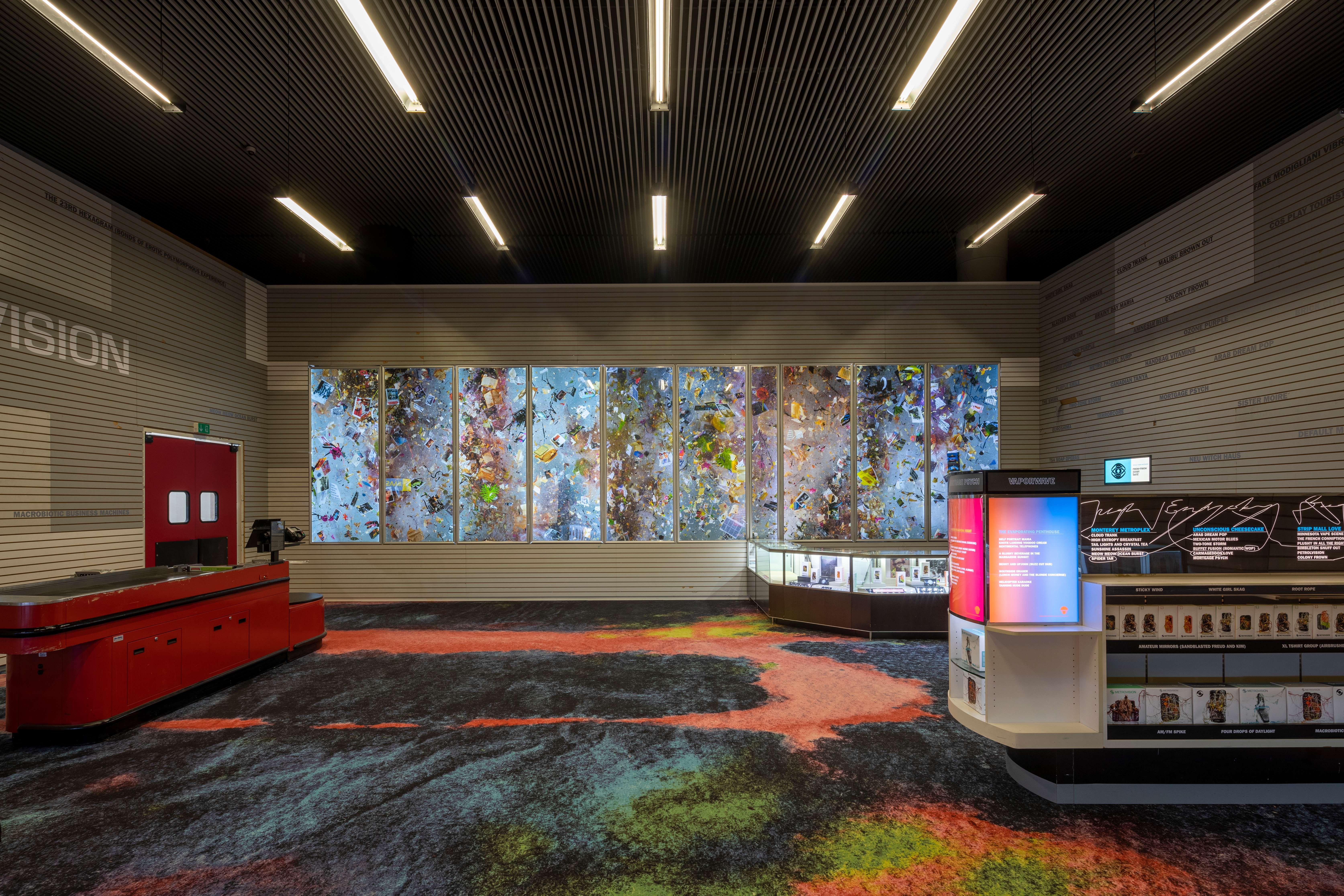 Cosplay Tourists [from Colony Sound], 2019. Glazed ceramic, silkscreen ink, black sanded grout, artists frame, 65 3/4 x 81 1/8 inches, 167 x 206.1 cm
