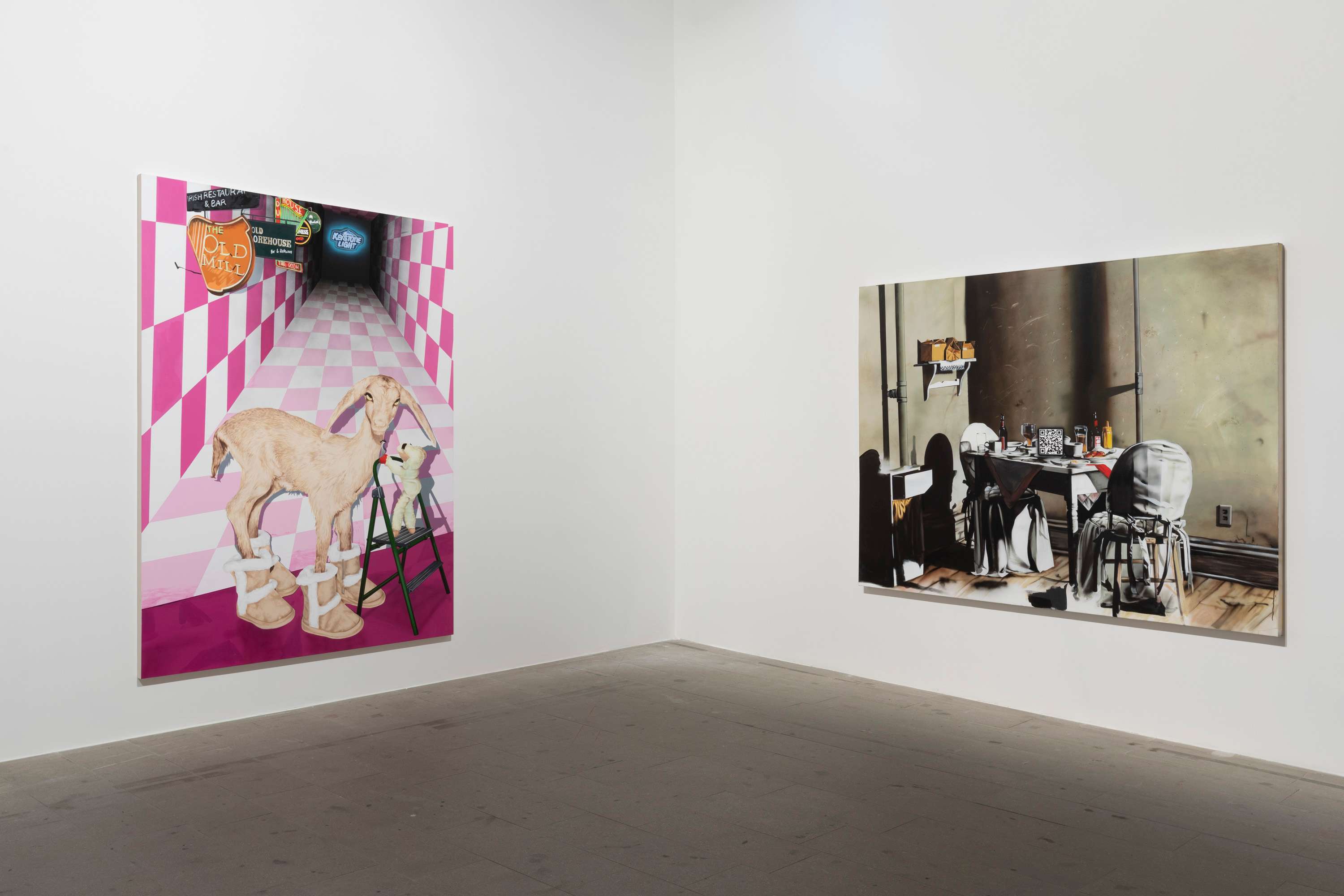 Jamian Juliano-Villani, West End Girls, 2020. Acrylic on canvas, 60 by 72" (152.4 by 182.8 cm)