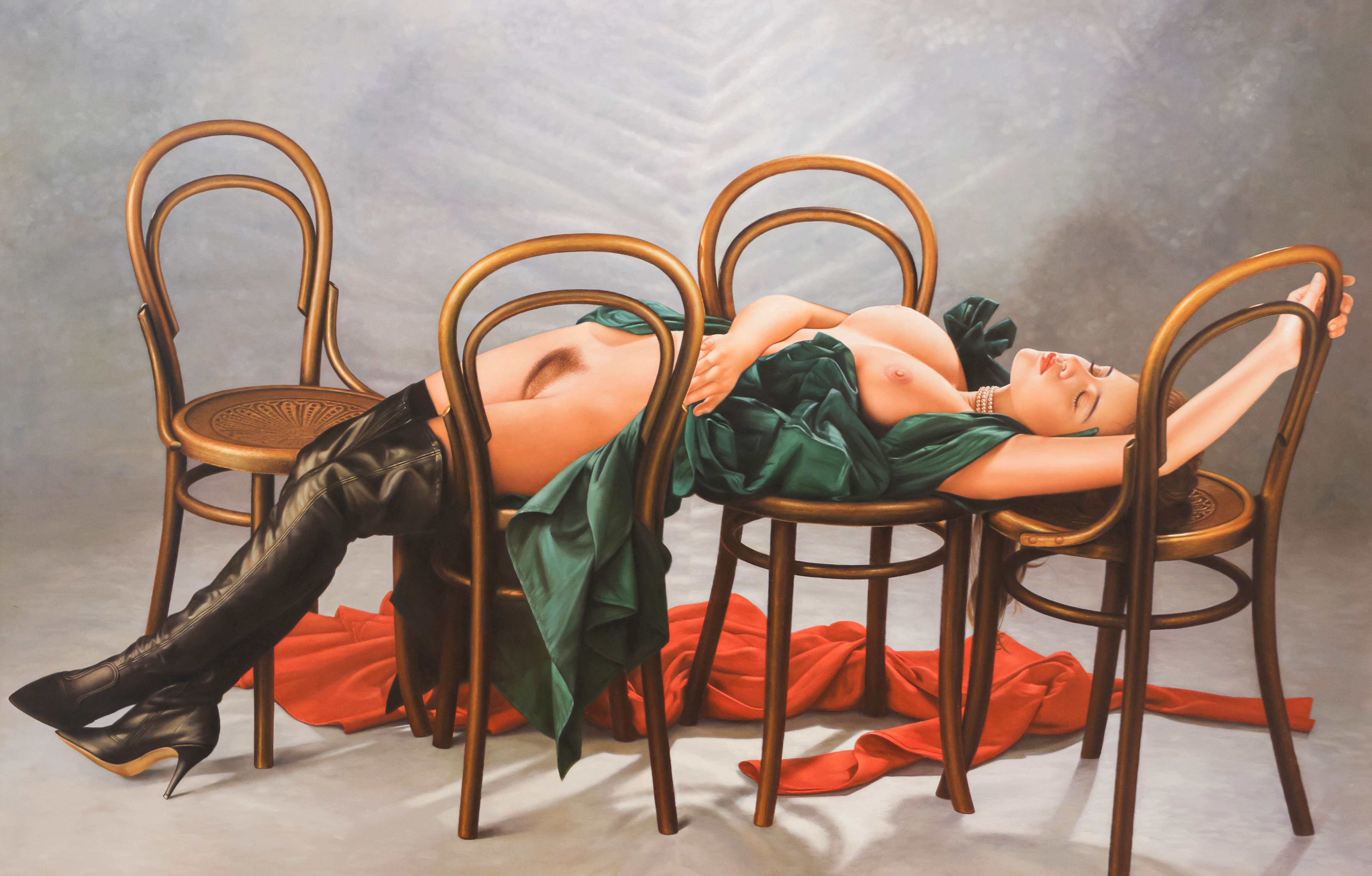 Jamian Juliano-Villani, Bolero Boys, 2022. Oil on canvas 48 x 72 ”(121.9 x 182.9 cm)