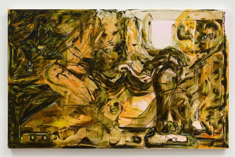 Jo Messer, I can't weather weather with you, 2021. Oil on canvas, 37 x 59 inches. Courtesy 56 Henry, New York.