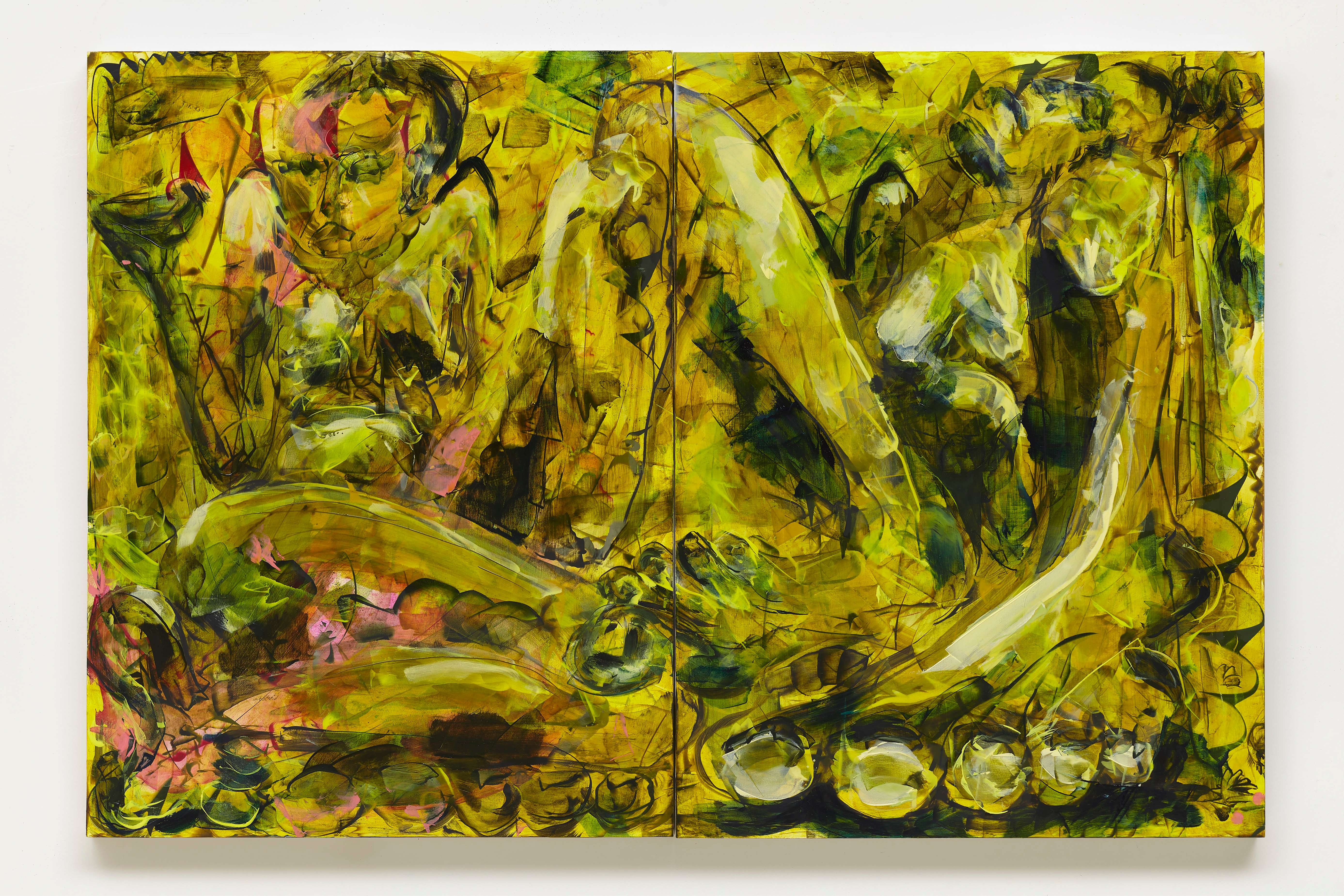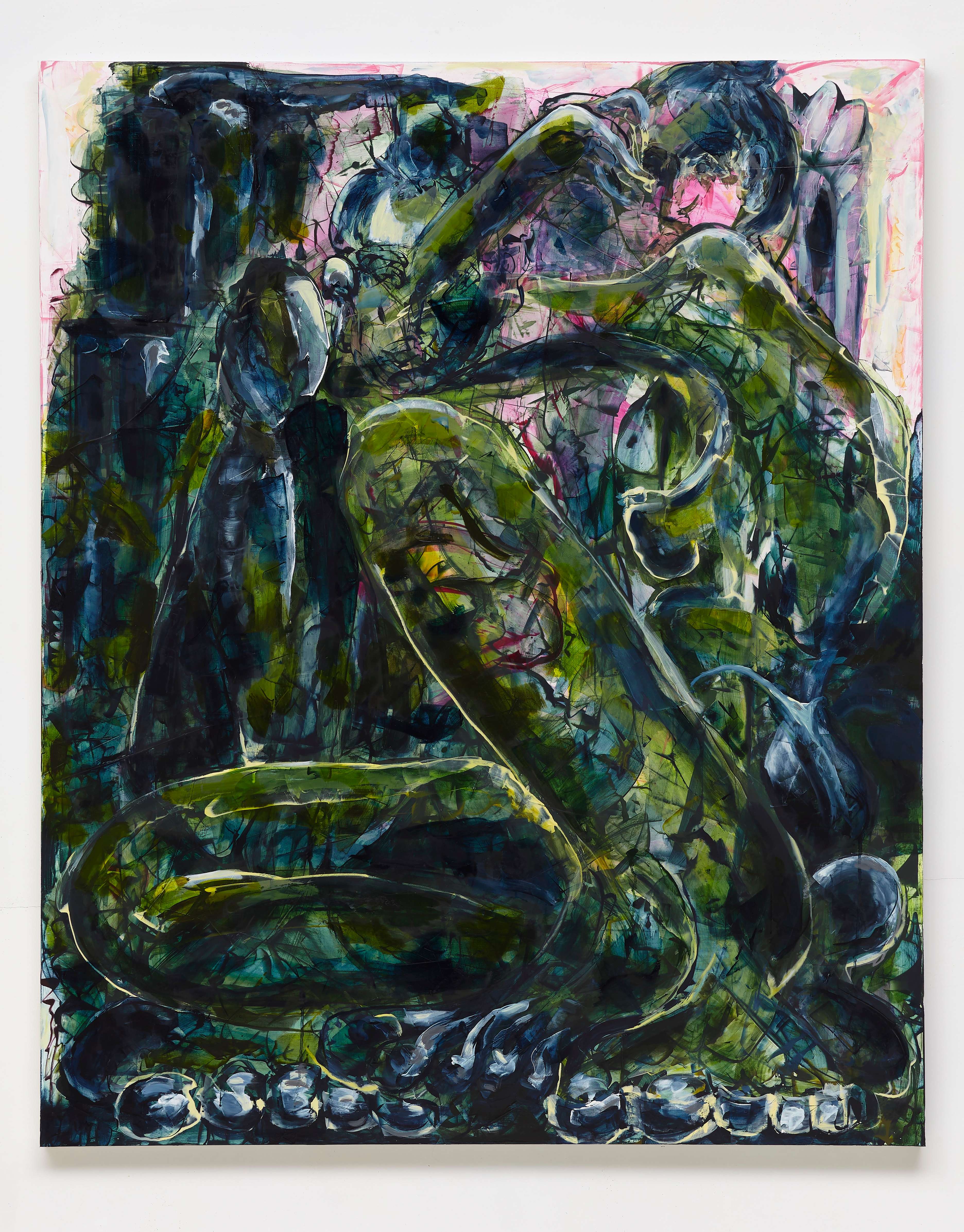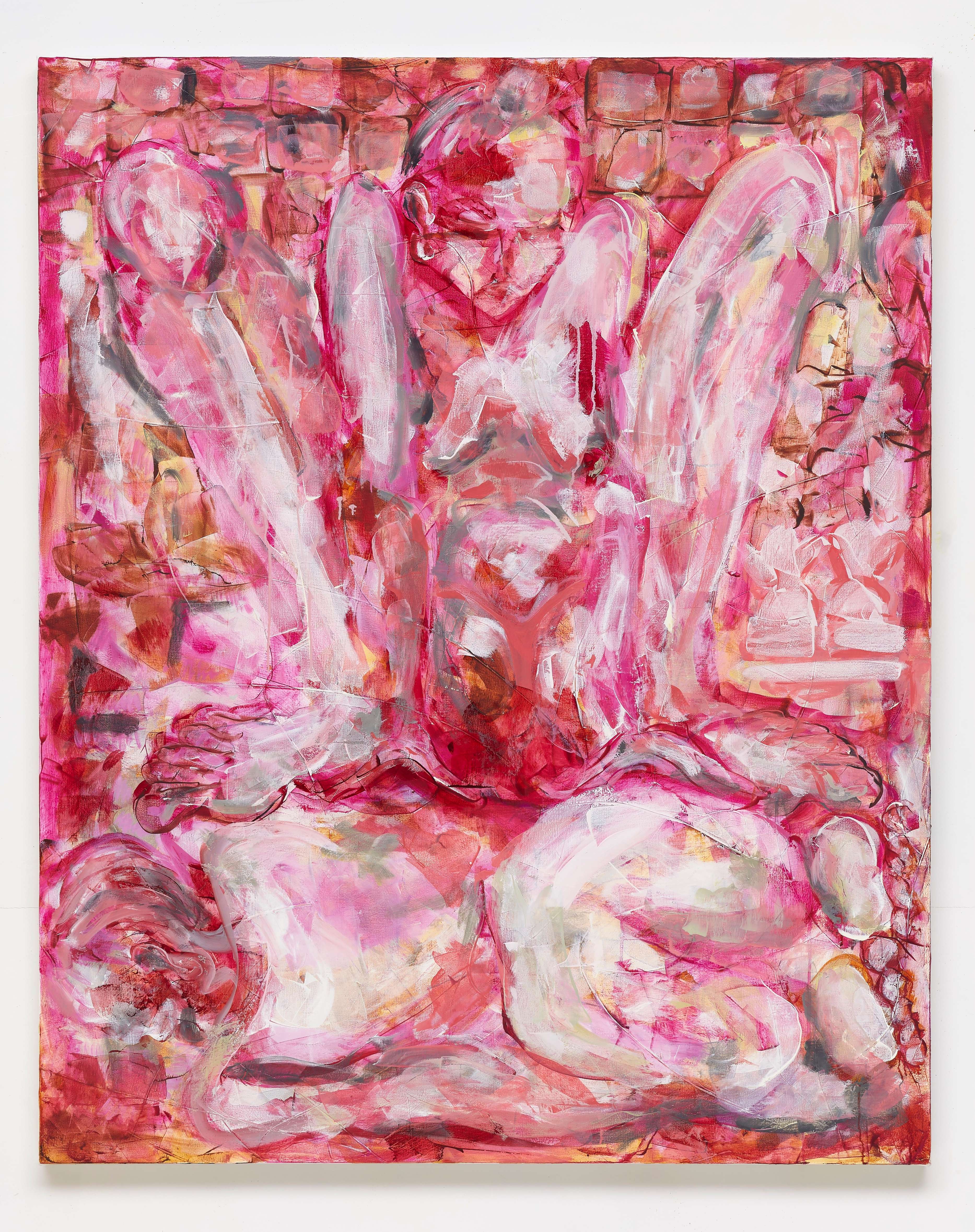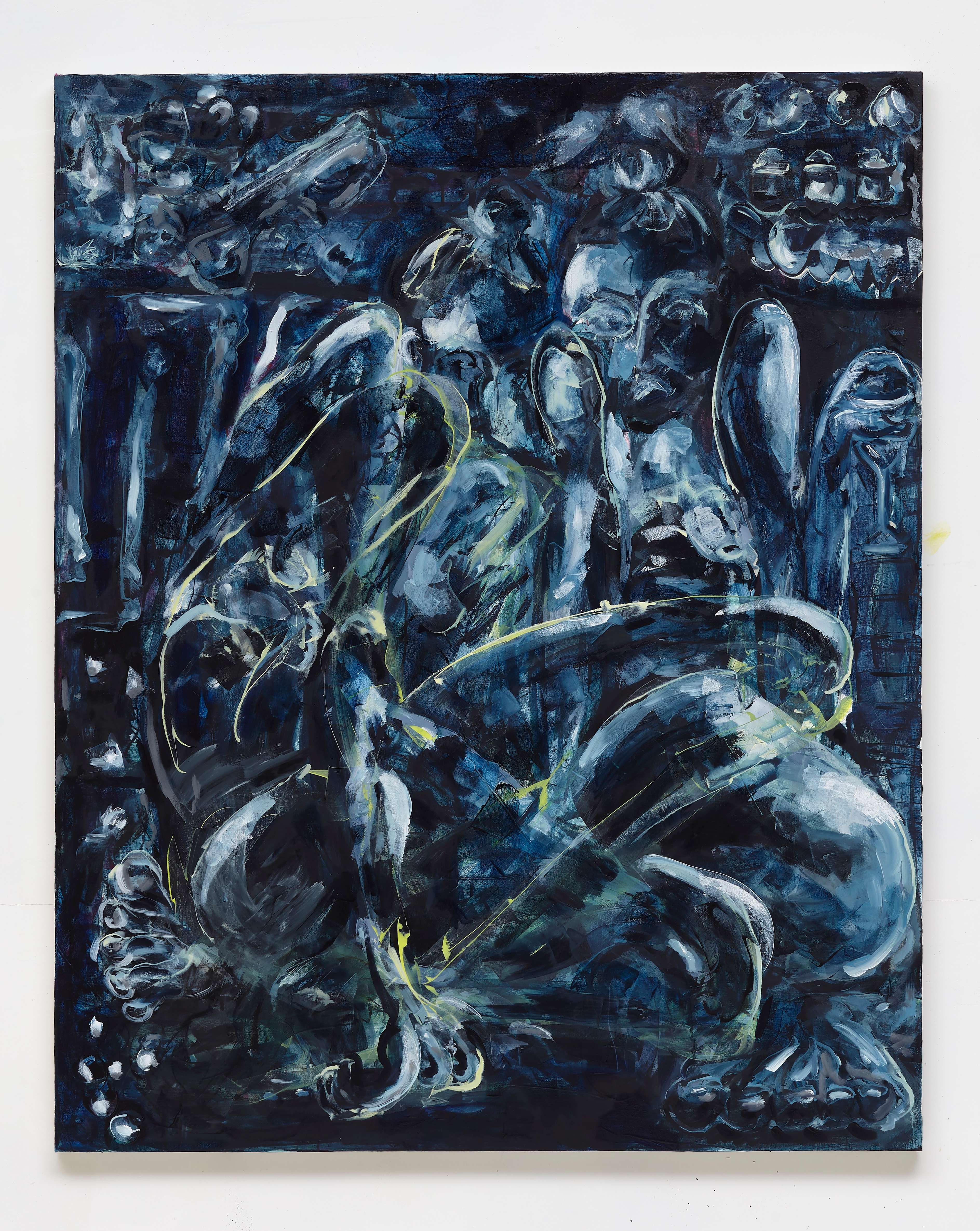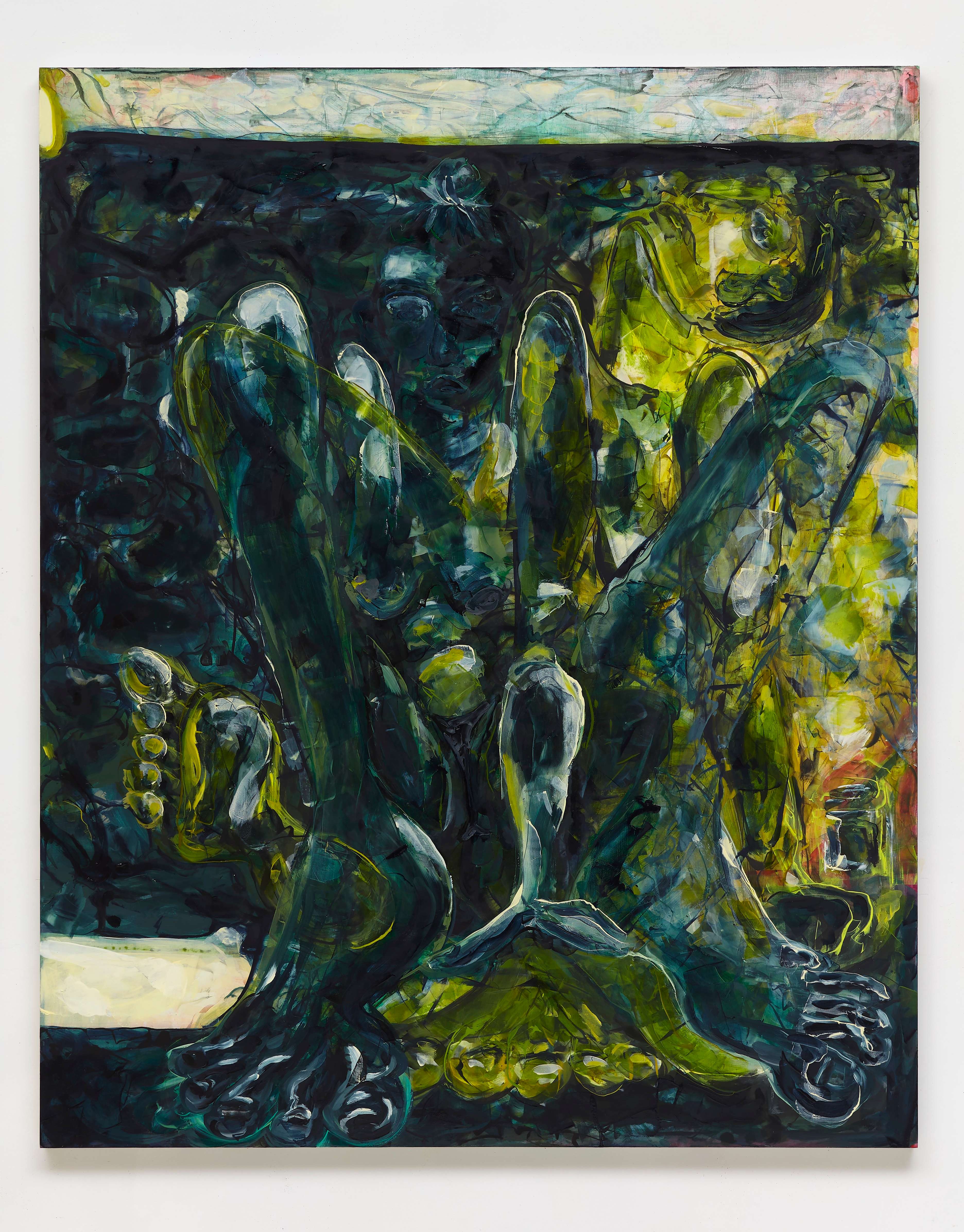 It climbed into me, 2022. Oil paint and oil stick on canvas, 54 x 43" (137.2 x 109.2 cm)