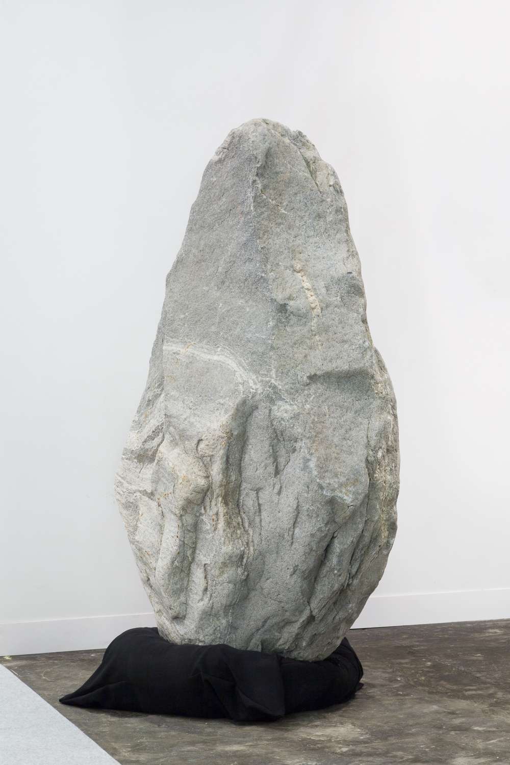 Boulder II, 2017 [DETAIL]. Hollowed boulder, carbon fibers, sandbag, concrete, 63 × 35 3/8 × 23 5/8 inches