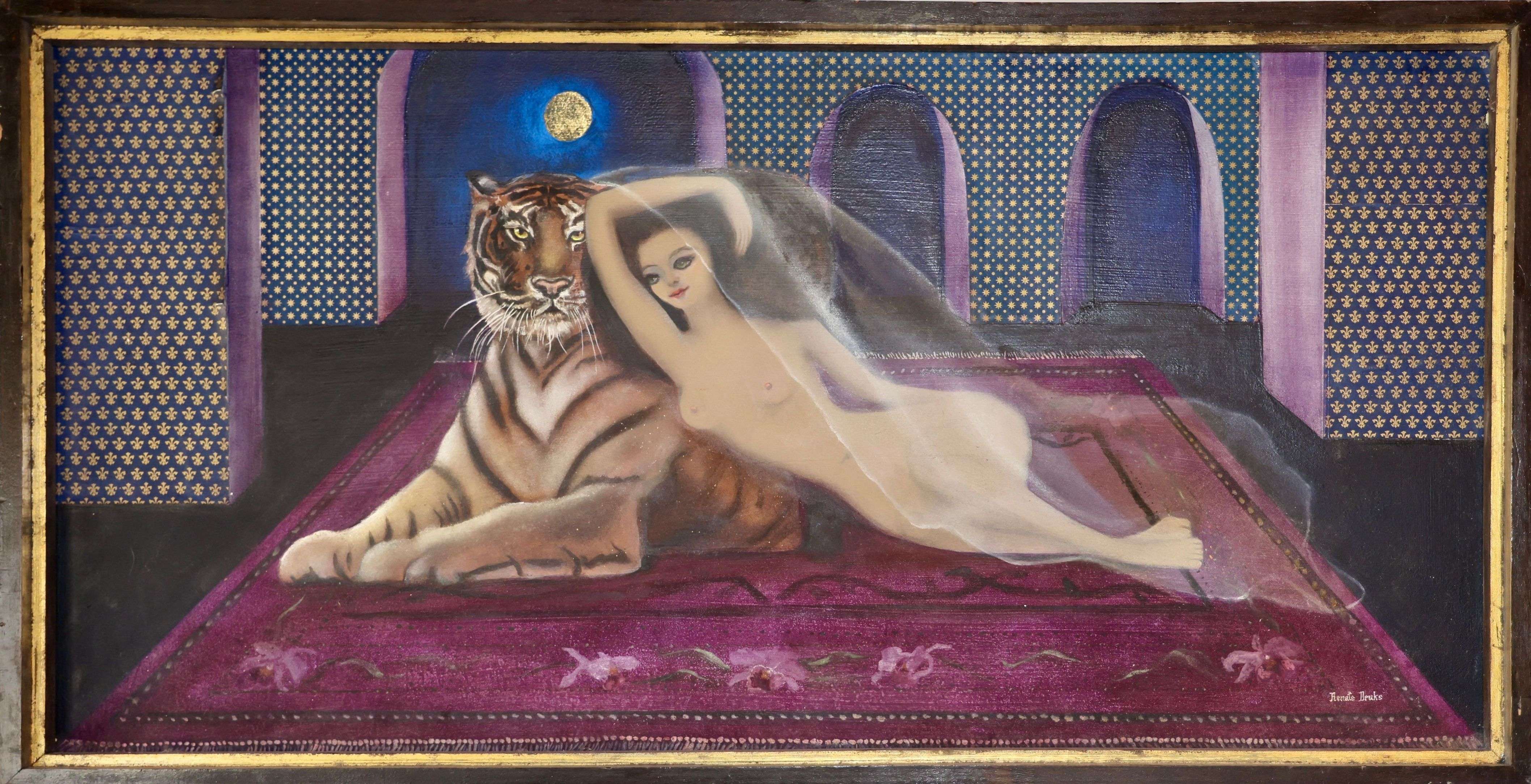 Nude and Tiger, 1980. Oil and papier collés on panel, 15 x 30 inches