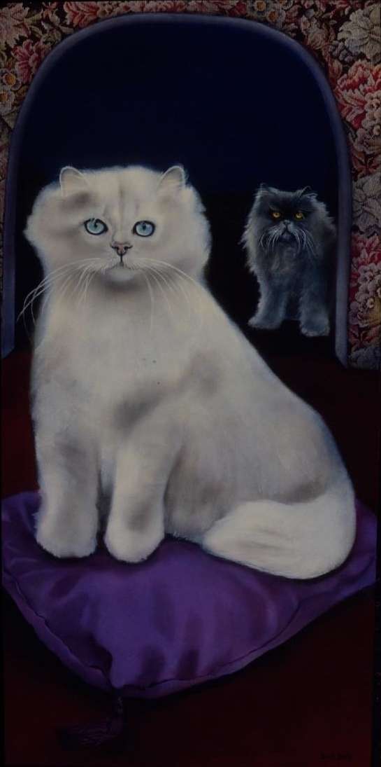 Male Cat Club, 1980. Oil and papier collé on panel, 24 x 18 inches