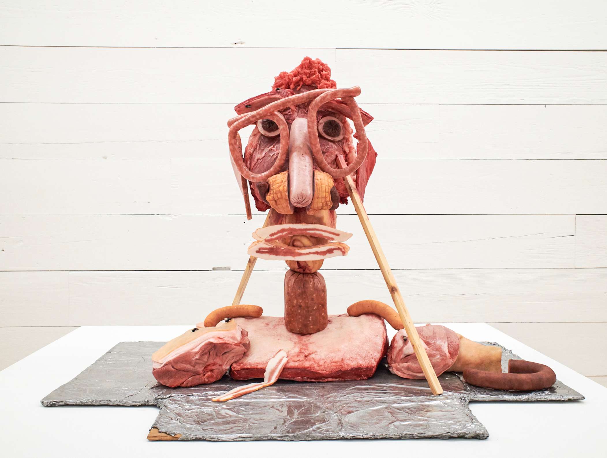 Tony Matelli, Meat Head, 2008 Cast aluminum, cast bronze, polyurethane, acrylic paint, 2008, 33.8 x 48.2 x 30" (85.852 x 122.428 x 76.2 cm)
