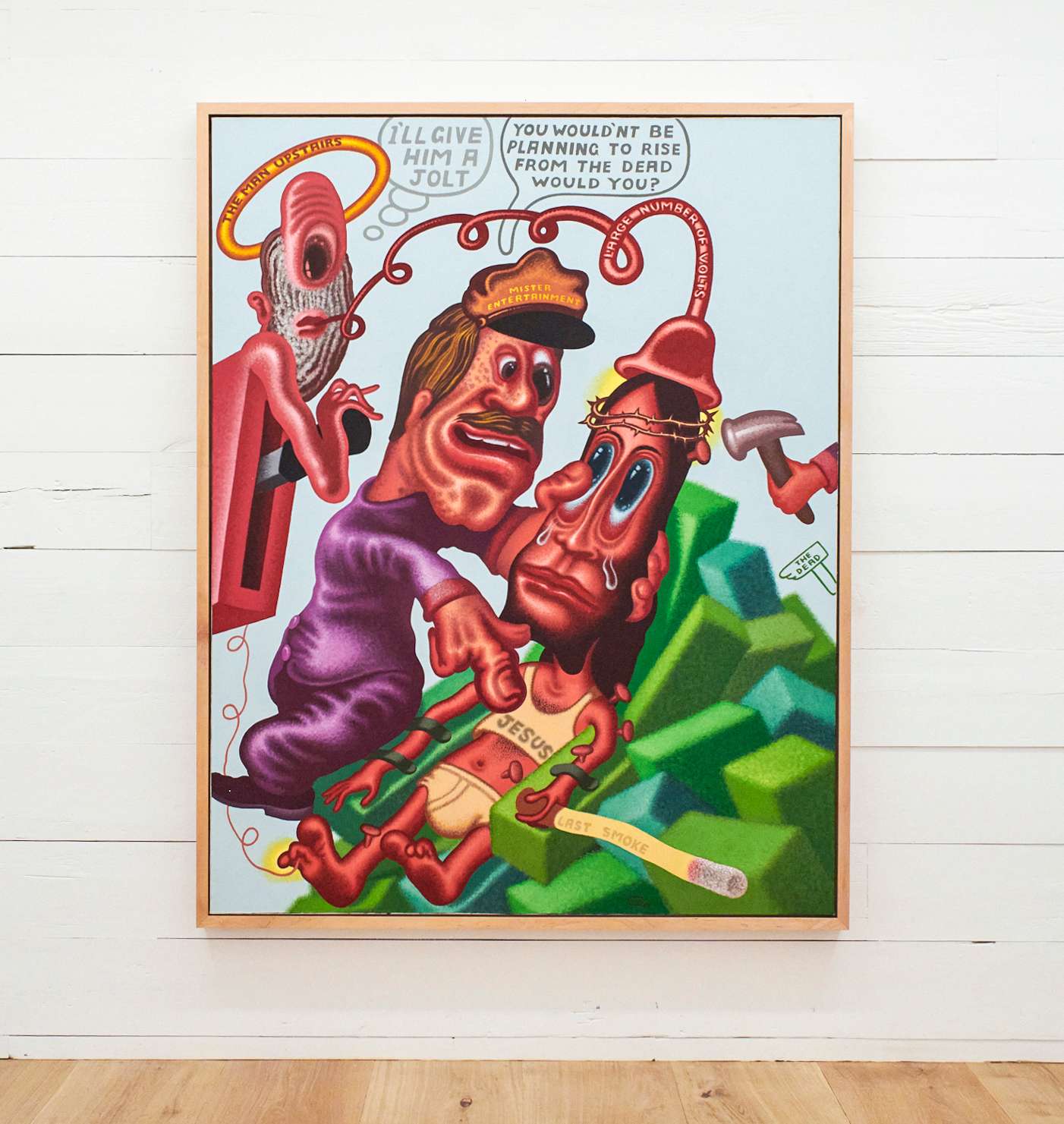 Peter Saul, Jesus in Electric Chair, 2004 Acrylic on canvas 84 x 68” ( 213.4 x 172.2 cm)