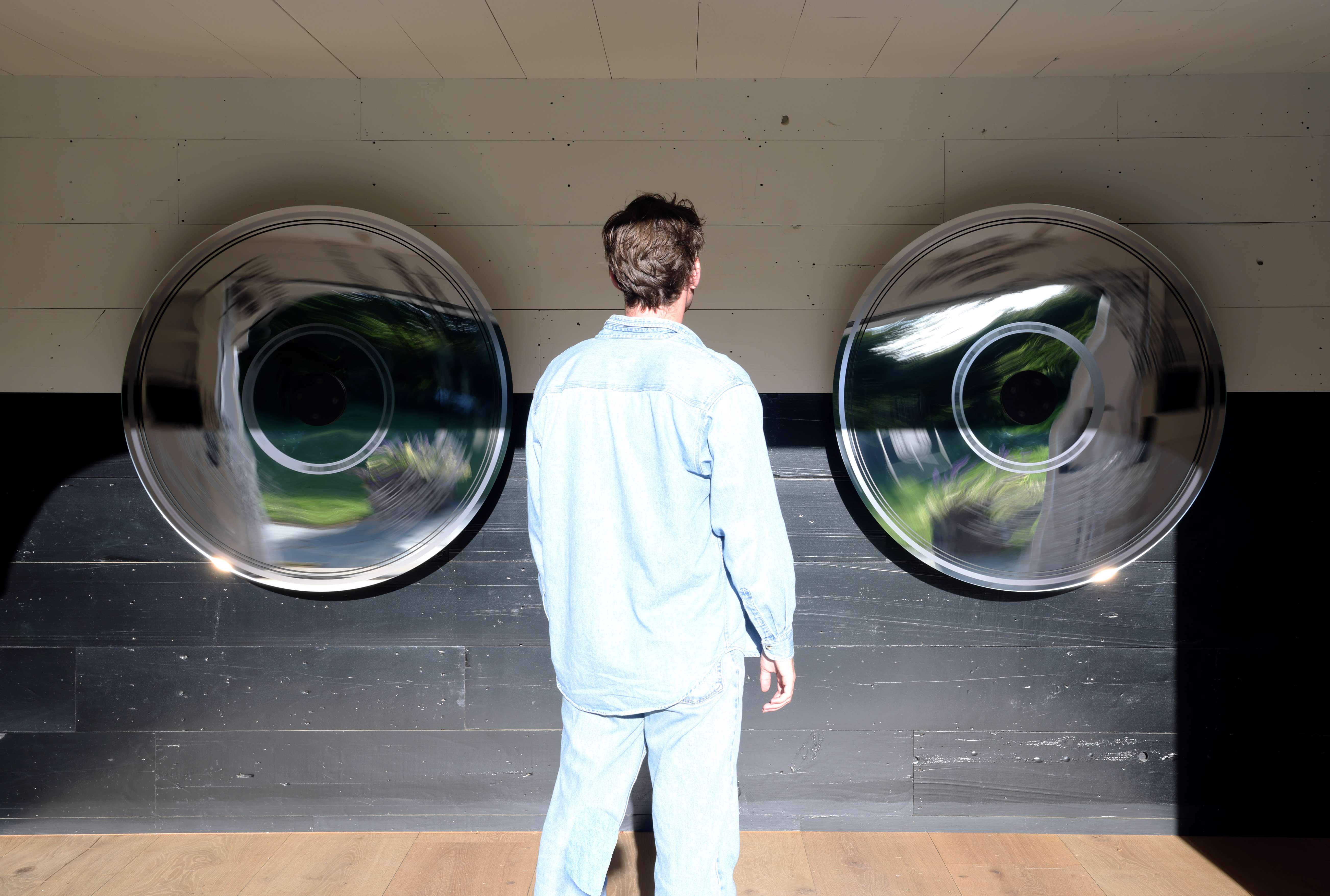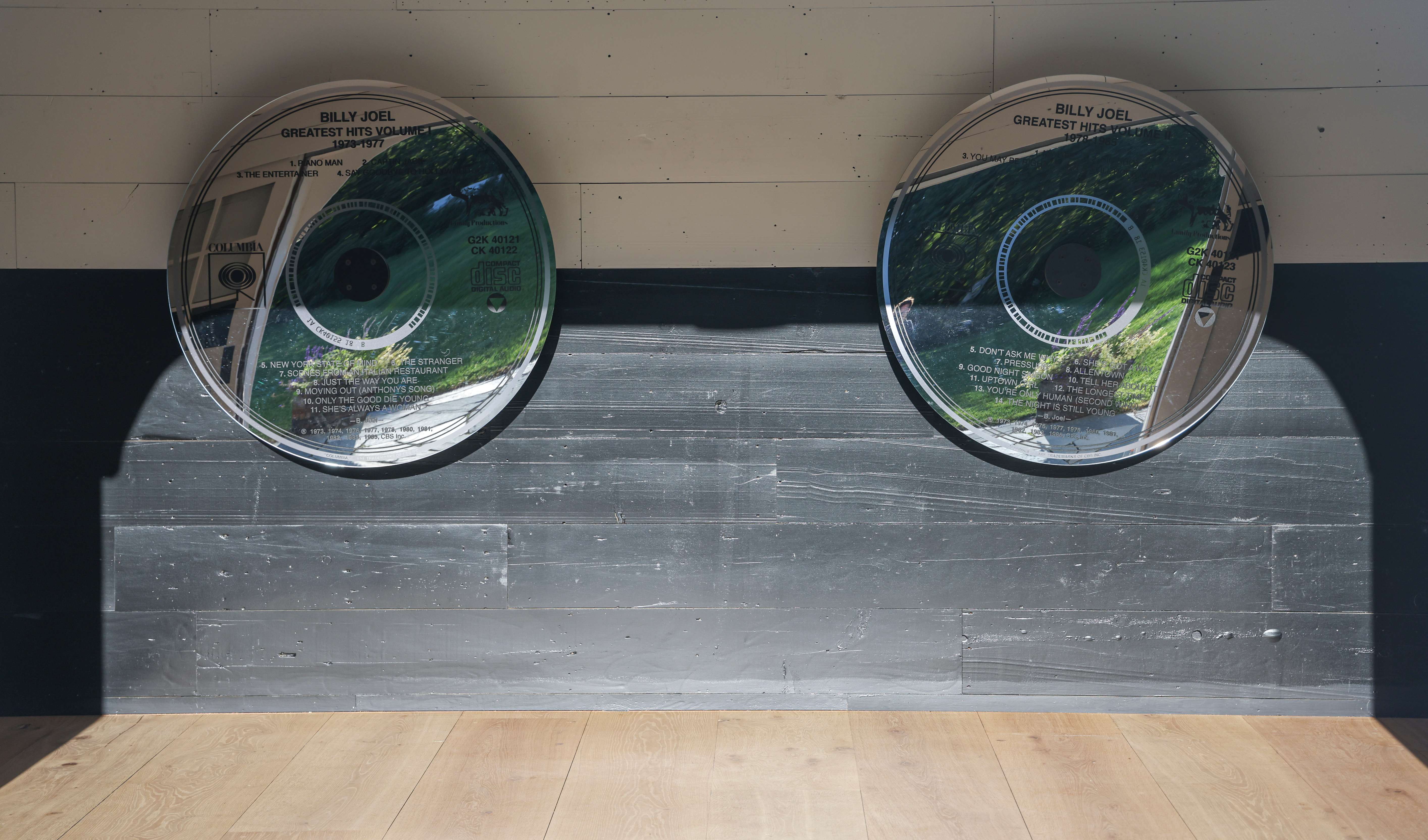 Jamian Juliano-Villani, Billy Joel Volumes I & II, 2022. Inkjet on acrylic, motor, custom mount 46.5 ”Diameter (118.1 cm)