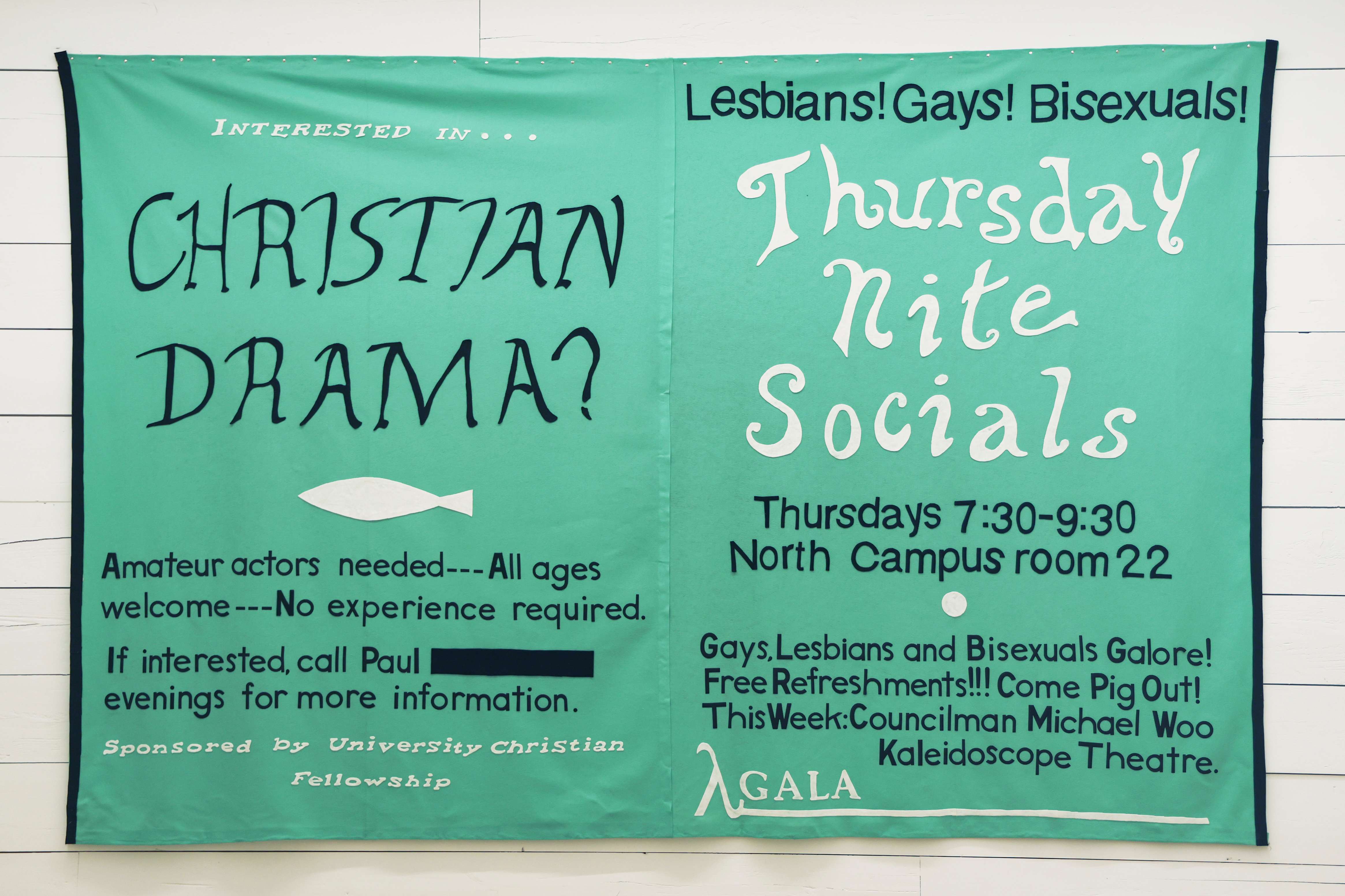Mike Kelley, Unitled (Christian Drama/Thursday Night), 1993. Felt banner 94 x 144 ”(238.8 x 365.5 cm)