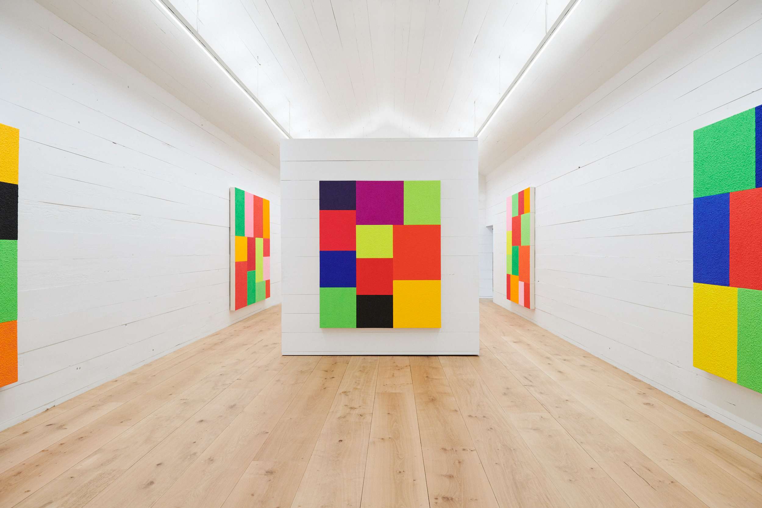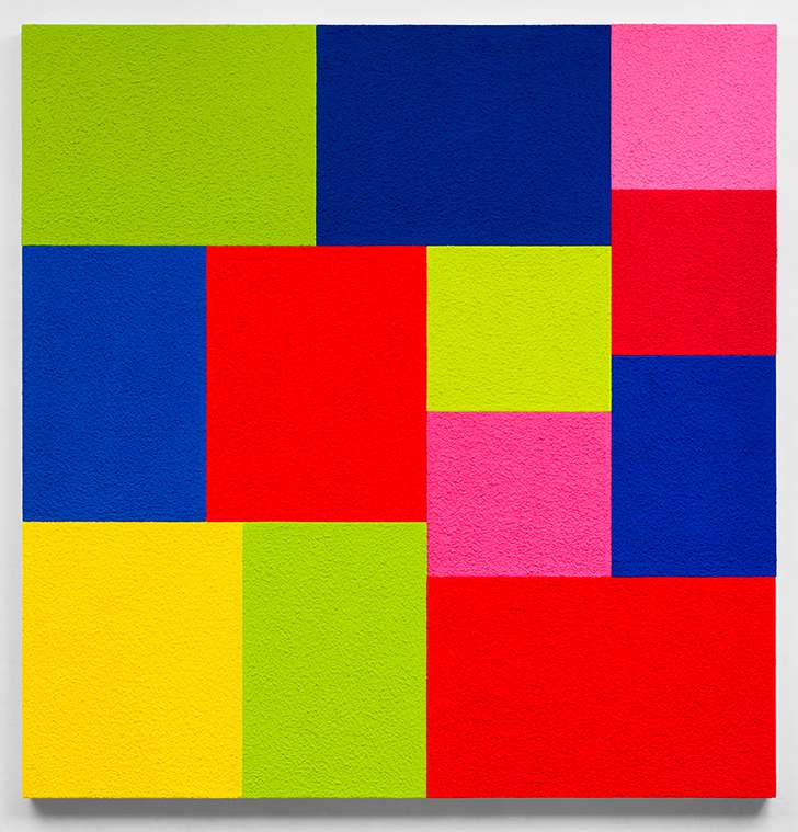 SAW II, 2016. Acrylic, fluorescent acrylic, and Roll-a-Tex on 13 attached canvases, 95 x 112 inches (241 x 284 cm) Collection Gary Tatintsian, New York / Moscow